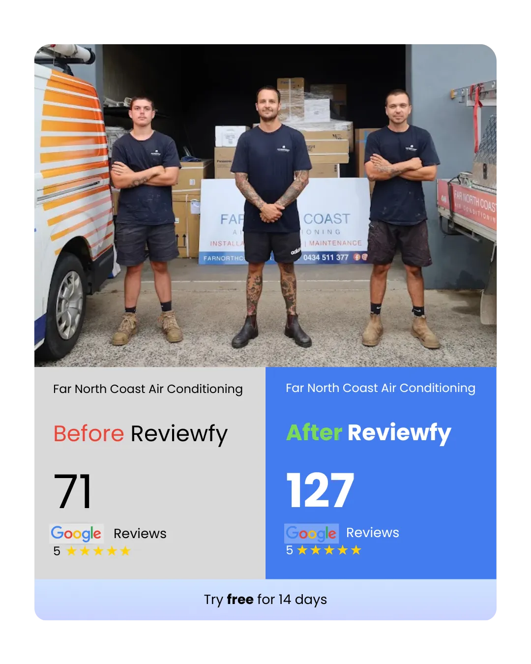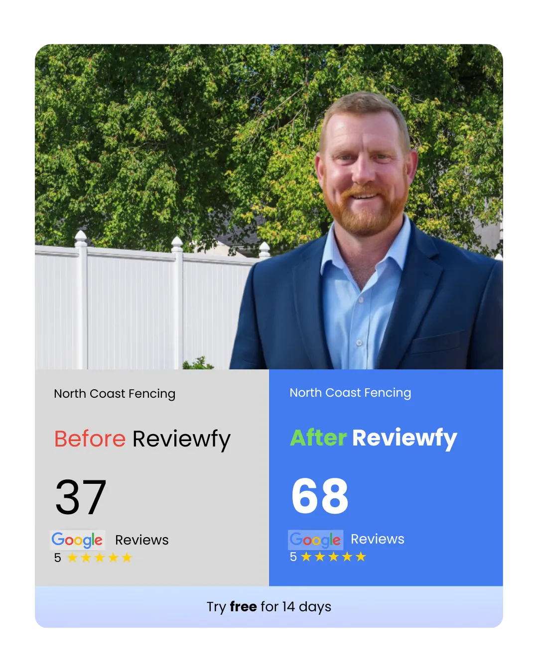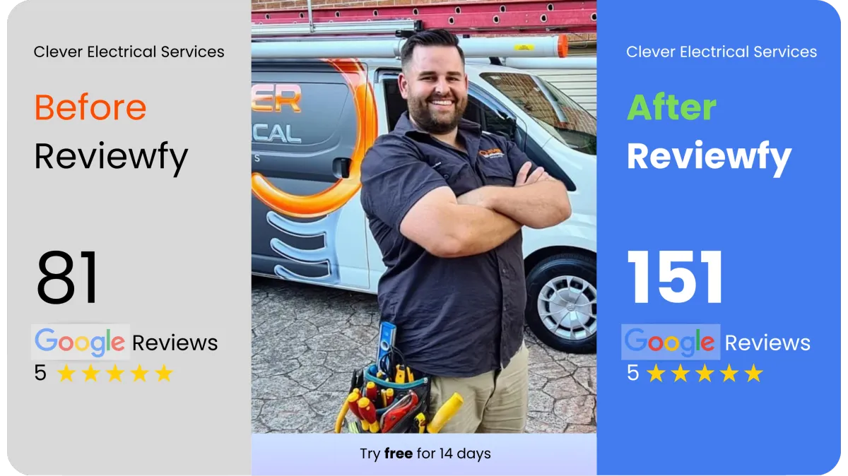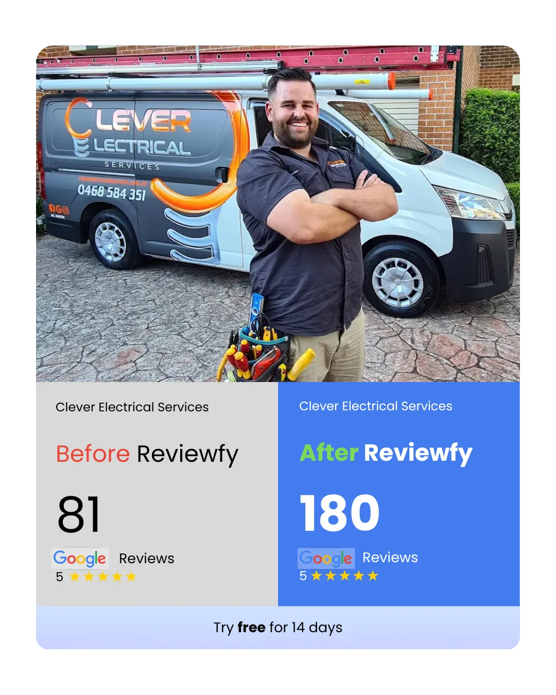 Reviewfy is built for local business owners who want more 5-star Google reviews without the hassle. We work with home service businesses, tourism/rental businesses, and even franchises. Whether you’re a solo service provider or managing multiple locations, if you want more reviews without the hassle Reviewfy is for you.
