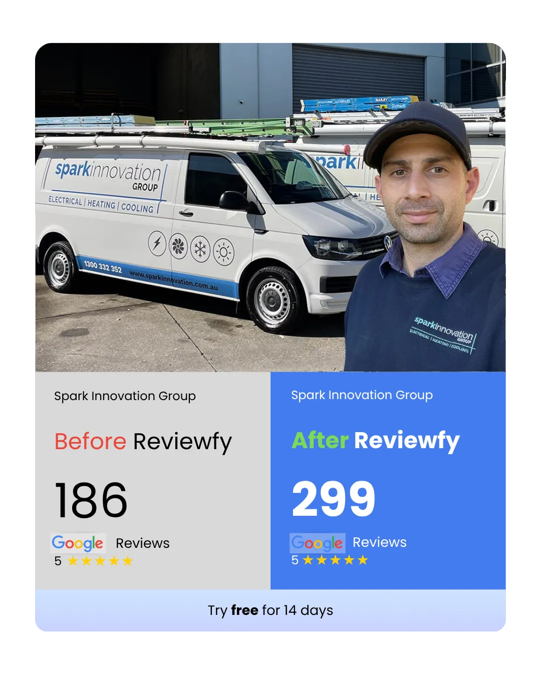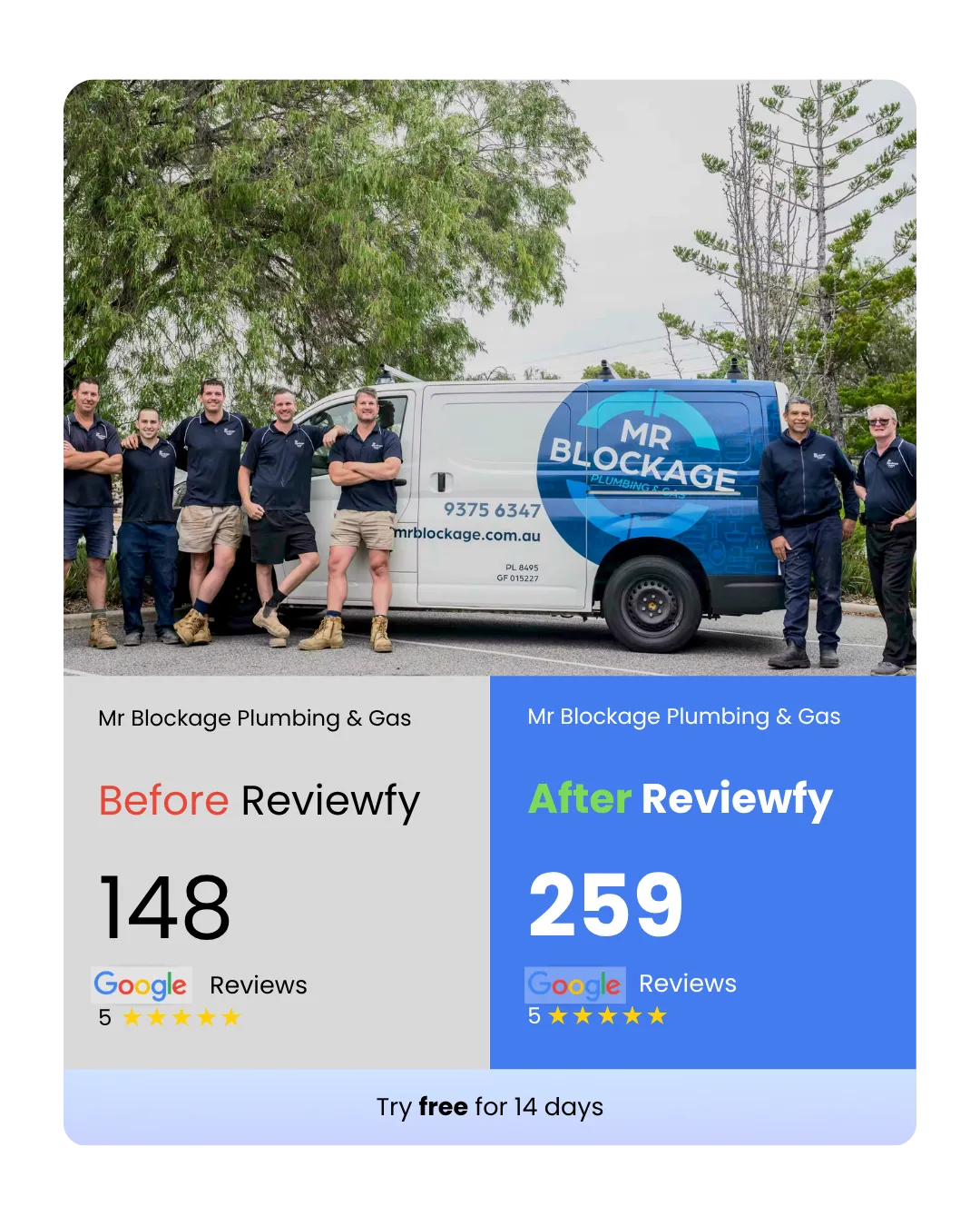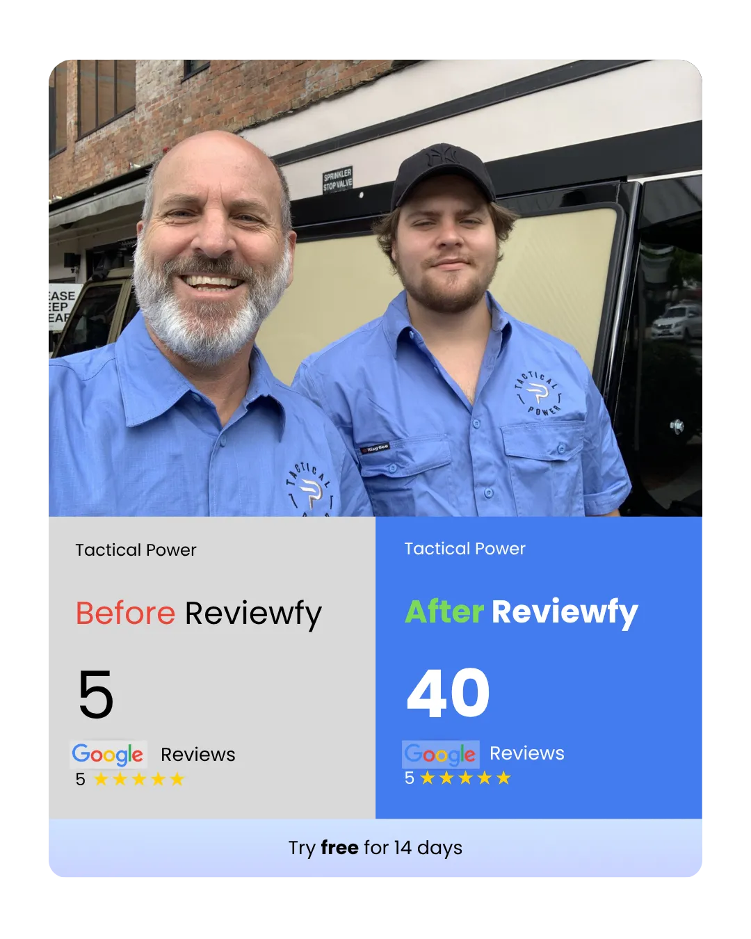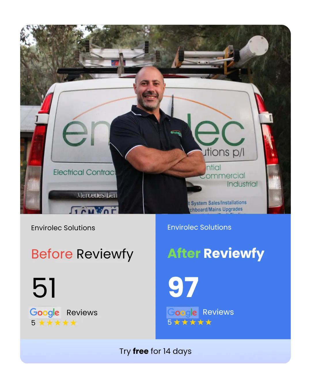Reviewfy is built for local business owners who want more 5-star Google reviews without the hassle. We work with home service businesses, tourism/rental businesses, and even franchises. Whether you’re a solo service provider or managing multiple locations, if you want more reviews without the hassle Reviewfy is for you.